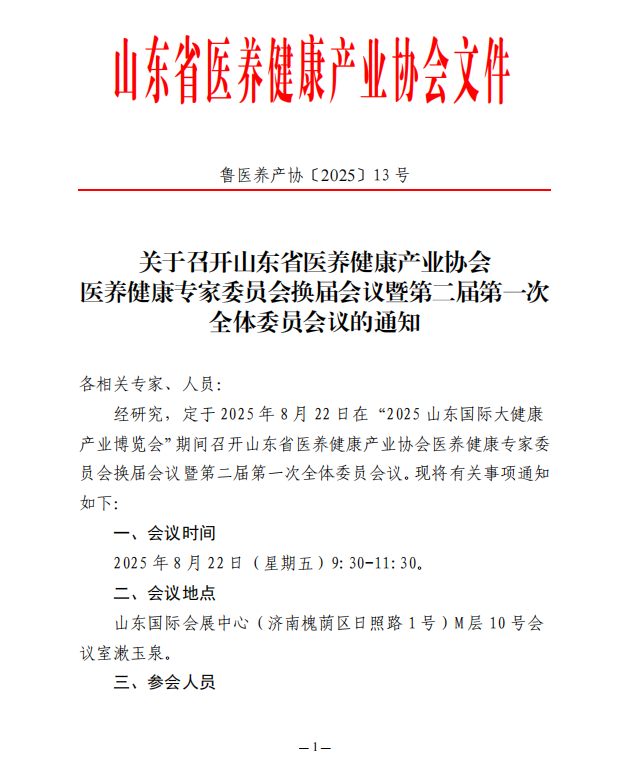 关于召开山东省医养健康产业协会医养健康专家委员会换届会议暨第二届第一次全体委员会议的通知