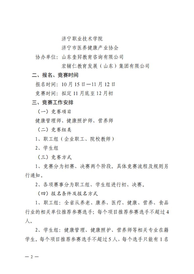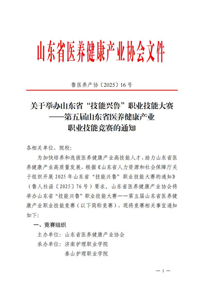 关于举办山东省“技能兴鲁”职业技能大赛——第五届山东省医养健康产业职业技能竞赛的通知