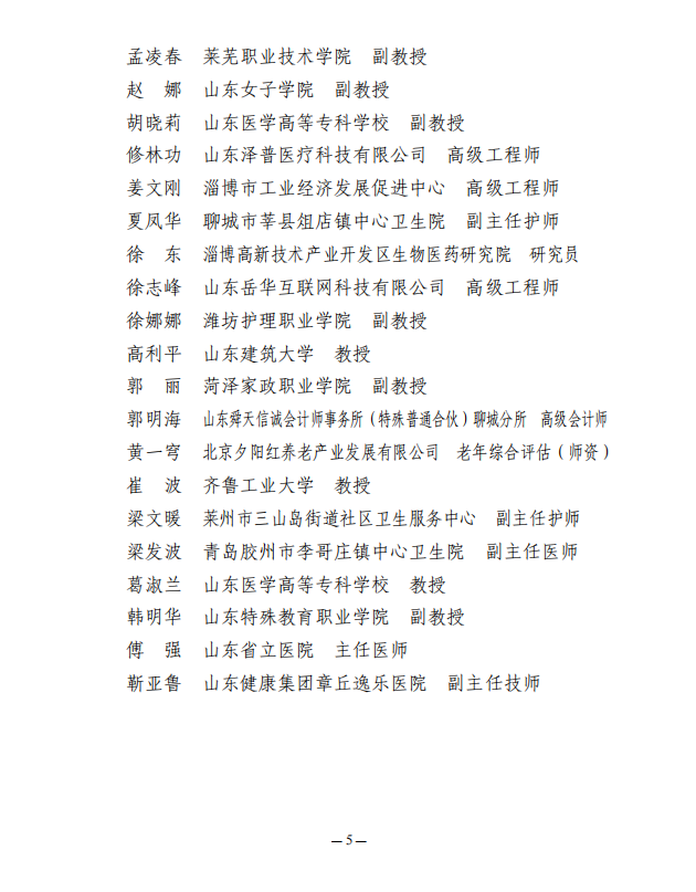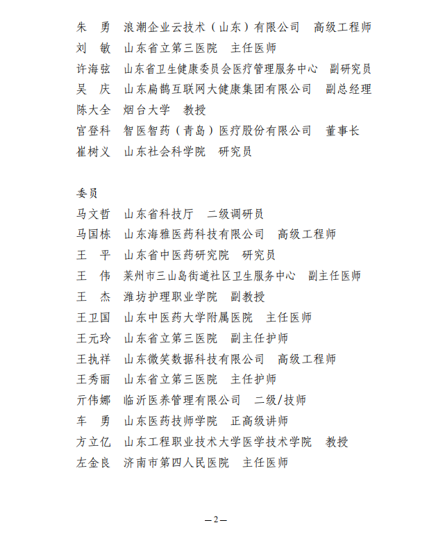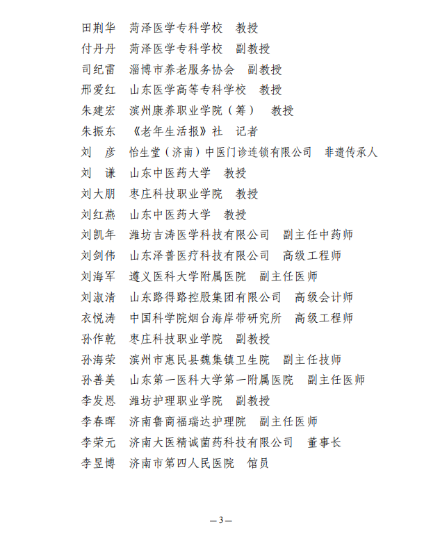 关于公布山东省医养健康产业协会第二届医养健康专家委员会名单的通知