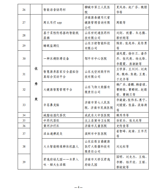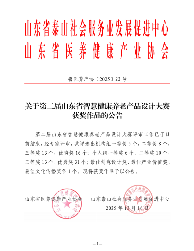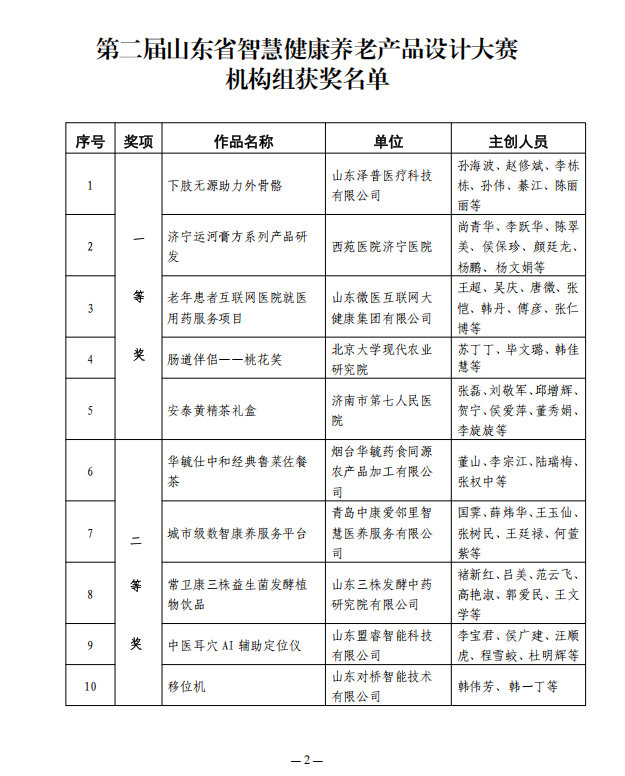 关于第二届山东省智慧健康养老产品设计大赛获奖作品的公告