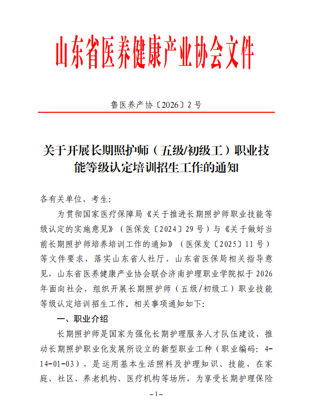 关于开展长期照护师(五级初级工)职业技能等级认定培训招生工作的通知.pdf