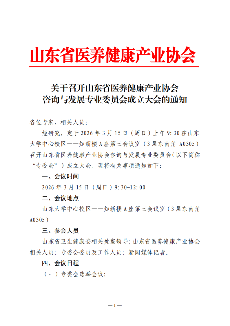 关于召开山东省医养健康产业协会咨询与发展专业委员会成立大会的通知