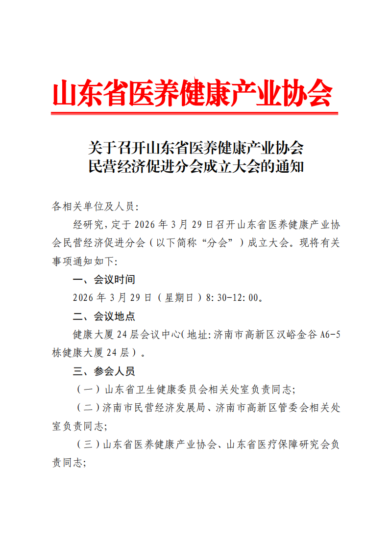 关于召开山东省医养健康产业协会民营经济促进分会成立大会的通知